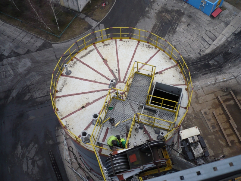 Elektrociepłownia Białystok w Białymstoku. Na zdjęciach widać, że zbiornik jeszcze nie jest pomalowany.
